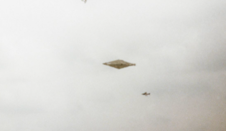 "Bức ảnh Calvine" mới được công bố cho thấy một vật thể lớn hình kim cương trên trời, và một vật thể khác giống máy bay phản lực Harrier cách đó không xa.
