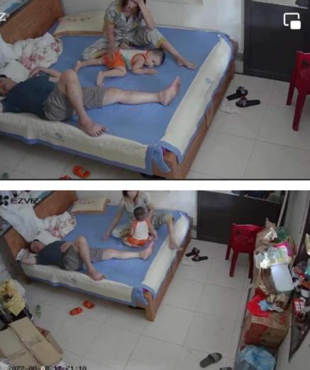 Cụ thể trong đoạn clip được trích xuất từ camera an ninh, một người mẹ trẻ đầu bù tóc rối vật vã lên xuống dỗ đứa con trai nhỏ đi ngủ mà không thành. Đứa trẻ hiếu động hết lăn trườn, rồi trèo lên người mẹ, mãi mà không chịu nằm yên. Nhìn cảnh người mẹ mệt mỏi, ngáp lên ngáp xuống, ai cũng thấy thương.