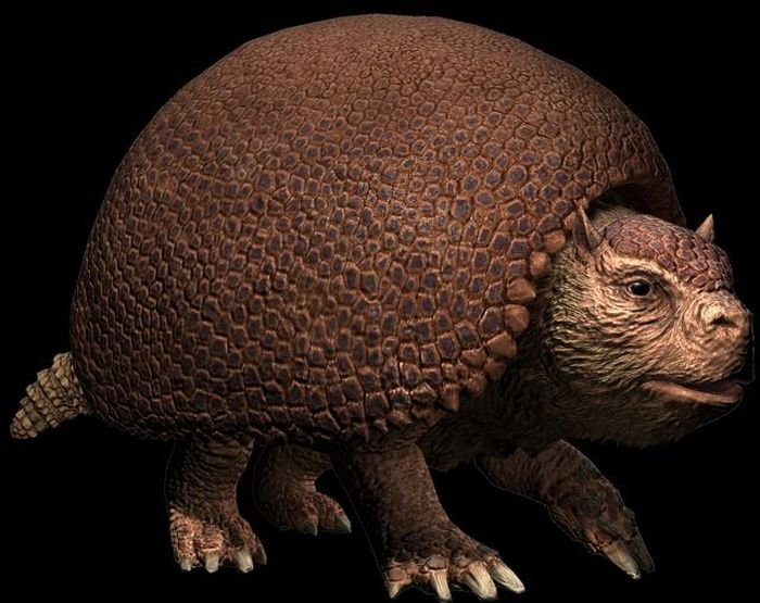 Loài động vật khổng này dài hơn 3m và nặng tới gần 2 tấn, chúng sinh sống ở Bắc và Nam Mỹ ngày nay. Ngoài ra, những con Glyptodon còn sở hữu một chiếc đuôi khá dài và khỏe, đi kèm với đó là một bộ giáp bao phủ toàn bộ cơ thể với hơn 1.000 tấm vảy xương. Chúng là một loài động vật ăn cỏ với tính cách khá ôn hòa và không bao giờ phải lo lắng khi đối mặt với những kẻ săn mồi.