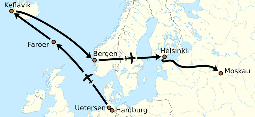 14 giờ cùng ngày, trạm ra đa Kohtla-Jarve của lực lượng phòng không không quân của Liên Xô đặt ở Estonia phát hiện trên tuyến bay Helsinki-Moskva có một chiếc máy bay cỡ nhỏ ở độ cao 600 m. Trực ban lần lượt dùng 3 thứ tiếng: Phần Lan, Nga và Anh hỏi: “Có phải người mình không?” Nhưng tất cả những gì họ nhận được là một sự im lặng đáng sợ. Rõ ràng đây là một chiếc máy bay tự tiện xâm phạm vùng trời của Liên Xô, cần phải có biện pháp ngăn chặn khẩn cấp. Nghĩ vậy, nhưng những sỹ quan thuộc lực lượng phòng không không quân lại không dám mạo hiểm ra quyết định. Bài học từ sự kiện bắn rơi máy bay chở khách của Hàn Quốc vẫn còn đó, hơn nữa, Helsinki-Moskva là một trong những đường bay nhộn nhịp nhất châu Âu. Lỡ ra chiếc Cessna-172B Skyhawk xâm phạm vùng trời Liên Xô không vì mục đích quân sự thì hậu quả thật khó lường.