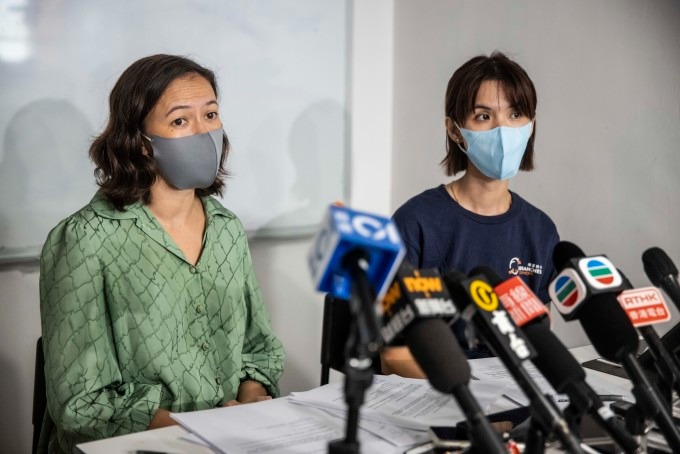 Luật sư nhân quyền Patricia Ho (trái) và giám đốc nhóm Dừng Buôn người ở Hong Kong Michelle Wong trong cuộc họp báo hôm nay. Ảnh: AFP.