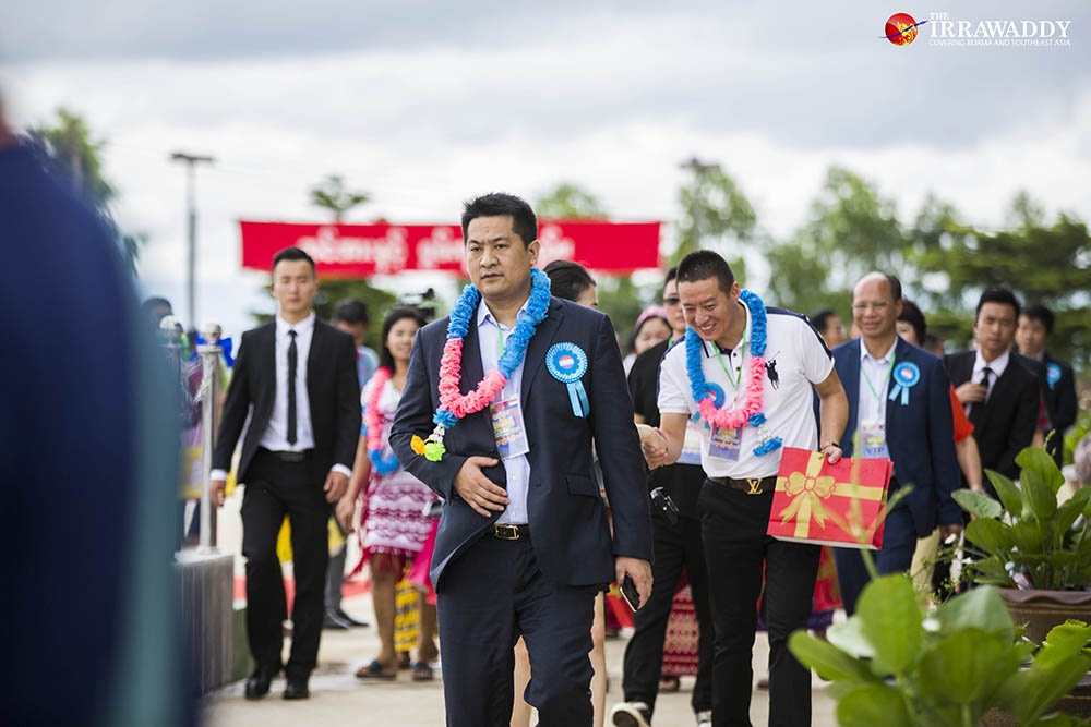 Bất chấp bị truy nã, ông She (thứ 4 từ trái sang) vẫn có thể xây dựng hình ảnh như một doanh nhân Hoa kiều thành đạt tại Đông Nam Á. Ảnh: Irrawaddy.
