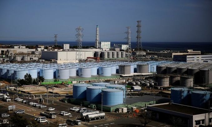 Các bể chứa nước thải đã qua xử lý tại nhà máy điện hạt nhân Fukushima Daiichi ở thị trấn Okuma, tỉnh Fukushima vào tháng 3/2021. Ảnh: Reuters.