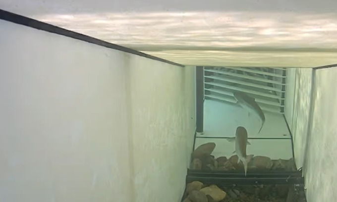 Cổng mở ra cho một cặp cá hồi Đại Tây Dương bản địa, cho phép chúng tiếp tục bơi ngược dòng sông. Ảnh: Huawei