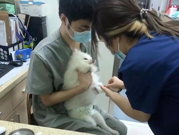 Chen đã chi 1.500 USD cho lần điều trị này. Các dấu hiệu đến nay đều tích cực khi Qiuqiu đã có thể ngồi dậy.