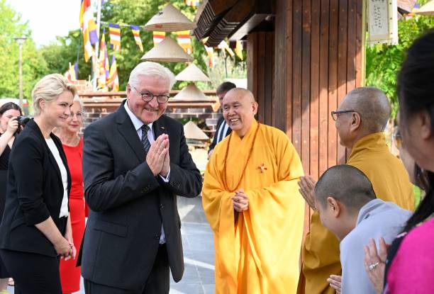 Theo như tiếp đón phái đoàn chính quyền Đức Tổng Thống Đức Frank-Walter Steinmeier là Hòa Thượng Thích Như Điển và Sư Bà Diệu Phước, khi Tổng Thống Đức đang chắp tay chào các tăng ni tại Tu Viện Lộc Uyển ở thành phố Rostock, miền bắc nước Đức chiều ngày 25 tháng 8, 2022. Cùng đi với Tổng Thống Steinmeier là bà Thống Đốc Manuela Schwesig của tiểu bang Mecklenburg ở bên trái.