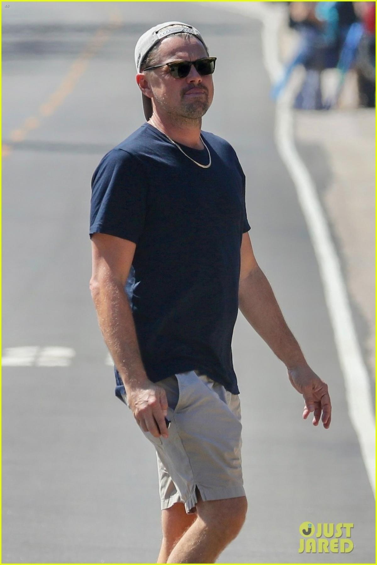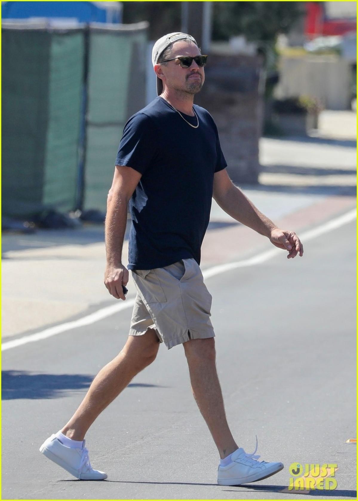 Tài tử "Titanic" mặc áo phông, quần shorts đơn giản và đội mũ ngược ra phố.