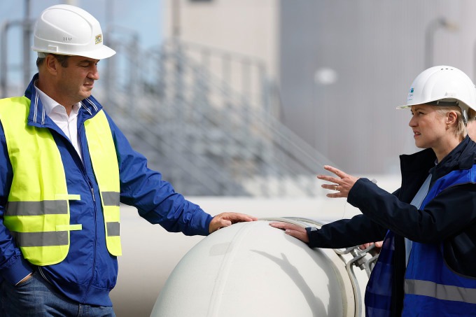 Quan chức Đức thăm Gascade và Deutsche ReGas, nơi dự kiến cung cấp khí đốt tự nhiên hóa lỏng (LNG) cho mạng lưới đường ống OPAL ở Lubmin, ngày 30/8. Ảnh: AFP.