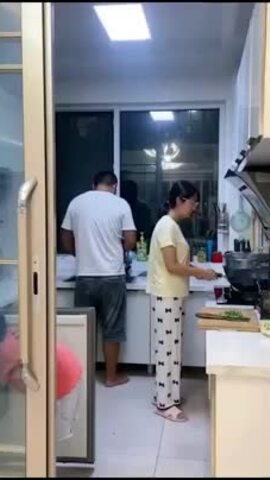 Chồng bỏ rơi vợ trong bếp vì tưởng cháy nhà. Anh chồng đã áp dụng đúng phương pháp 36 kế chuồn là thượng sách. Người chồng hốt hoảng la lớn khi thấy chảo ăn bốc cháy, vội vàng bế con gái bỏ chạy để mặc vợ một mình trong bếp.