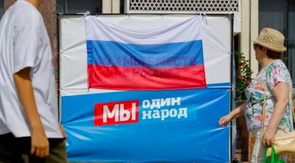 Các cuộc trưng cầu dân ý về việc gia nhập Liên bang Nga đã được lên kế hoạch ở một số khu vực Ukraine. Trong ảnh là áp phích chiến dịch này ở vùng Zaporizhzhia, phía đông Kherson. Ảnh Reuters