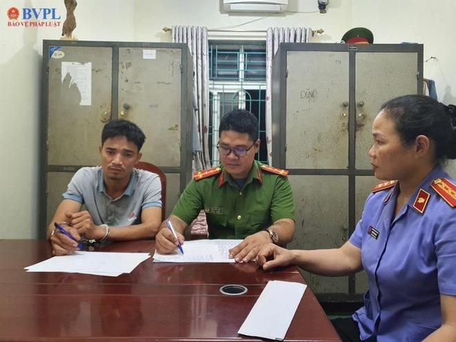 Kiểm sát viên và Điều tra viên lấy lời khai đối tượng Dương Văn Thế. Ảnh: VKSND tỉnh Vĩnh Phúc.
