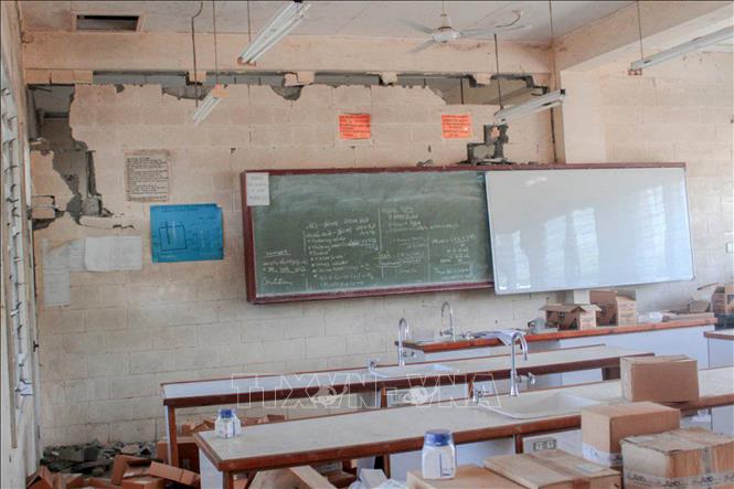 Một trường học bị hư hại sau trận động đất gần thành phố Lae, Papua New Guinea ngày 11/9/2022. Ảnh: AFP