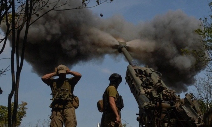 Các binh sĩ Ukraine ở Kharkov khai hỏa một khẩu lựu pháo M777 về phía vị trí của quân đội Nga ngày 1/8. Ảnh: Reuters.