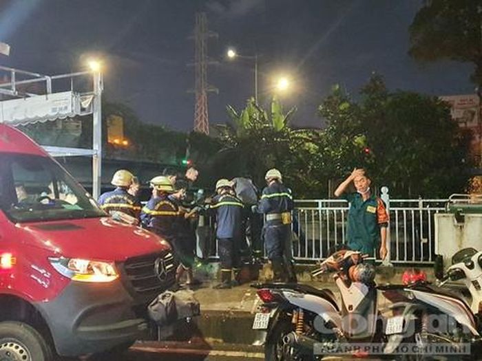 Nhận thông tin, lực lượng cứu hộ cứu nạn thuộc Cảnh sát PCCC Công an TPHCM đã điều 3 xe chuyên dụng cùng hơn 10 cán bộ chiến sĩ đến hiện trường triển khai công tác lặn tìm.