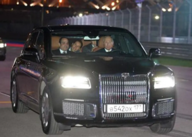 Chiếc xe thường chở ông, mẫu Aurus Senat do Nga sản xuất, cũng được bọc thép và sở hữu nhiều tính năng an toàn vượt trội. Trong quá trình phục vụ nhà lãnh đạo Nga, nó được điều khiển và bảo vệ 24/24 bởi các nhân viên an ninh được tuyển chọn kĩ lưỡng.