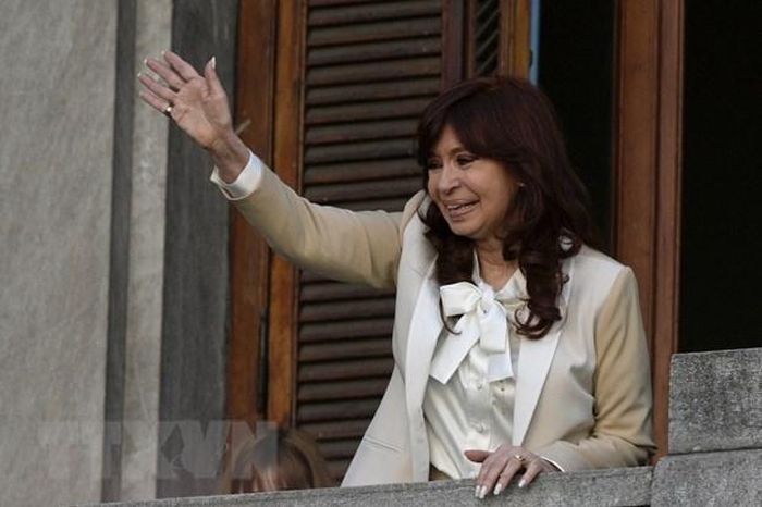 Phó Tổng thống Argentina Cristina Fernandez de Kirchner vẫy chào người ủng hộ từ ban công tòa nhà Quốc hội ở thủ đô Buenos Aires, ngày 23/8/2022. (Ảnh: AFP/TTXVN)
