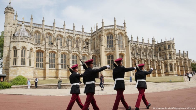 Lính canh đi qua Nhà nguyện St George năm 2020. Ảnh: AP.