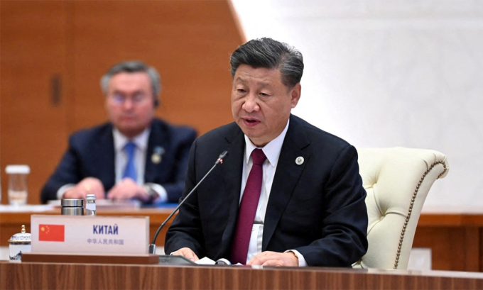 Chủ tịch Trung Quốc Tập Cận Bình phát biểu trong phiên họp của lãnh đạo các thành viên Tổ chức Hợp tác Thượng Hải tại Samarkand, Uzbekistan ngày 16/9. Ảnh: Reuters.