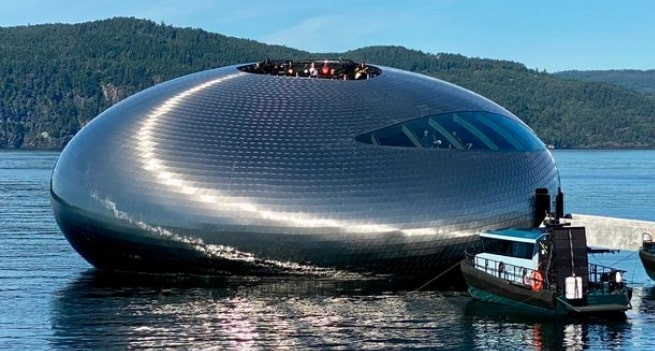 Tòa nhà hình UFO kỳ lạ xuất hiện trên hồ nước ở Na Uy