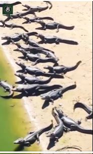 Hàng nghìn con cá sấu bất ngờ xuất hiện trên bãi biển khiến người dân Brazil hoảng loạn. Nhiều người dân địa phương trực tiếp chứng kiến đàn cá sấu xâm chiếm một bãi biển của Brazil, tỏ ra vô cùng sợ hãi.