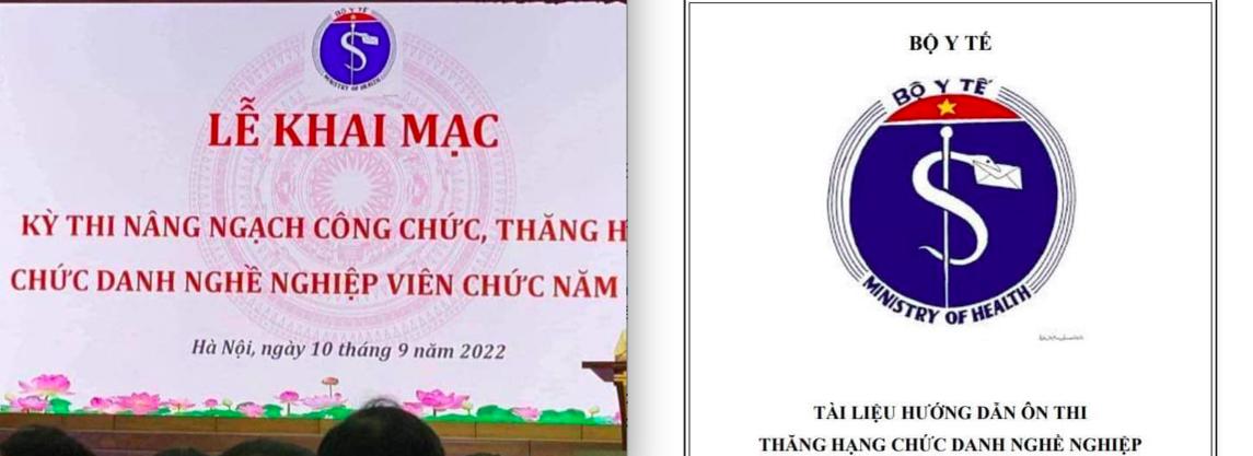 Logo lạ này xuất hiện trên phông nền lễ khai mạc kỳ thi nâng ngạch công chức, thăng hạng chức danh nghề nghiệp viên chức năm 2022 của Bộ Y tế. Địa điểm tổ chức tại Đại học Y Hà Nội. Ngoài ra, hình ảnh logo lạ còn xuất hiện trên tài liệu hướng dẫn ôn thi môn ngoại ngữ của Bộ Y tế (ban hành nội bộ) trong kỳ thi.