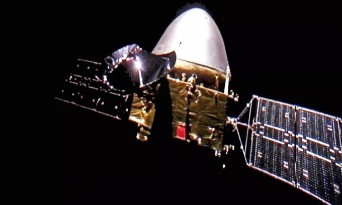 Tàu Thiên Vấn 1 chụp ảnh "tự sướng" cách Trái Đất 15 triệu dặm. Ảnh: CNSA