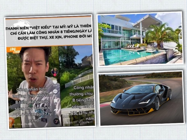 Bạn nhìn thấy ở sau lưng tôi là các căn biệt thị rộng 200 - 300m2. Tại Mỹ, bạn chỉ cần là công nhân bình thường chịu khó làm 8 tiếng/1 ngày, không cần làm hơn, không cần tăng ca là có cuộc sống như đại gia ở Việt Nam. Mỗi năm công nhân Mỹ thu nhập 1,7 tỷ đồng, với số tiền này thì công nhân Mỹ đều có biệt thự nhà vườn như Vinhomes, có xế xịn, iPhone dùng đời mời nhất... Đây là cuộc sống là gần như toàn bộ người dân Việt Nam mơ ước cũng không được.