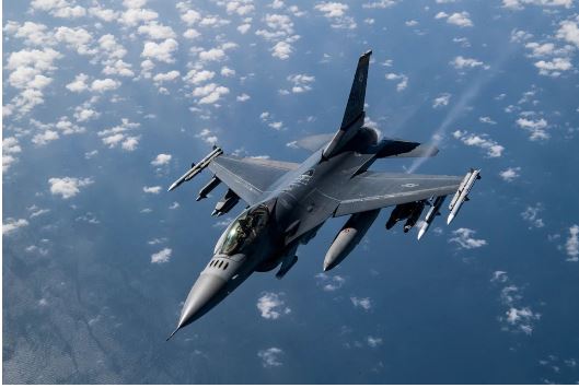 Tiêm kích F-16 vào vị trí tiếp nhiên liệu sau một cuộc tập trận trên Khu liên hợp dãy Alaska Thái Bình Dương, vào ngày 18/6/2021. Ảnh: Lực lượng Không quân Mỹ.