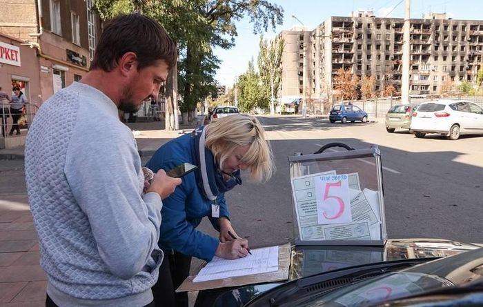 Người dân tỉnh Donetsk bỏ phiếu trong cuộc trưng cầu dân ý về việc sáp nhập vào Nga. Ảnh: TASS