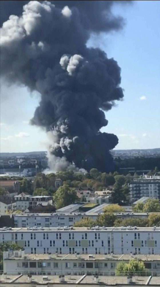 Một cột khói đen cuồn cuộn bao trùm khắp Paris hôm 25/9 từ một nhà kho bốc cháy ở khu chợ nông sản lớn nhất thế giới tại vùng ngoại ô phía Nam thủ đô Pháp.