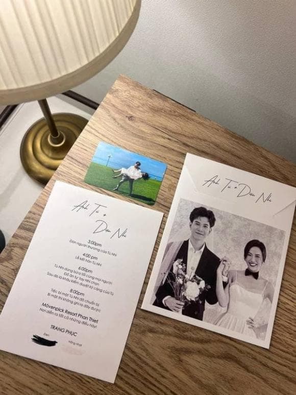 Hơn 200 tấm thiệp mời đã được gửi tới tay các khách mời, hàng loạt sao Việt như Trấn Thành, Trường Giang, vợ chồng Thu Trang - Tiến Luật, Ngô Kiến Huy, Kiều Minh Tuấn... đã không giấu được sự hào hứng khi khoe thiệp cưới của Diệu Nhi - Anh Tú trên trang cá nhân.