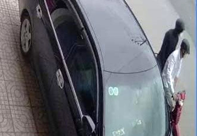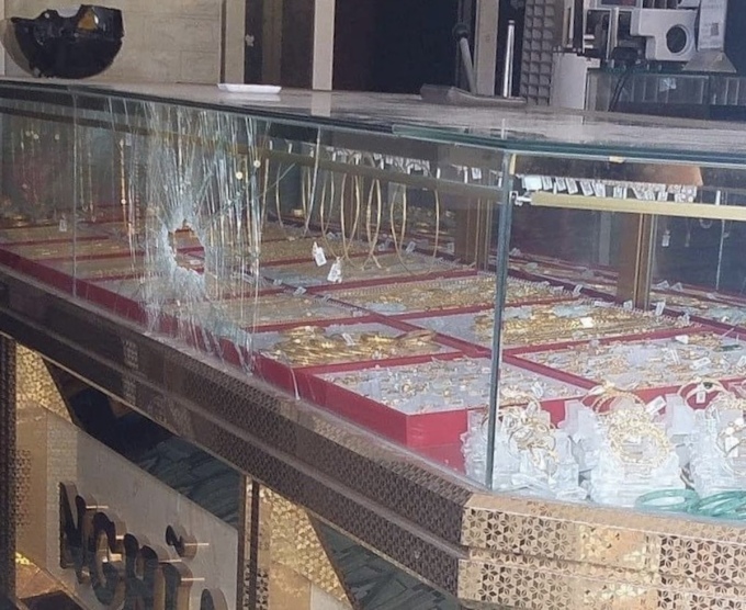 Một tên đi bộ vào trong, bất ngờ rút hung khí đập vỡ kính, thò tay gom một số vàng rồi nhanh chóng chạy ra xe đồng phạm chờ sẵn, phóng vút đi.