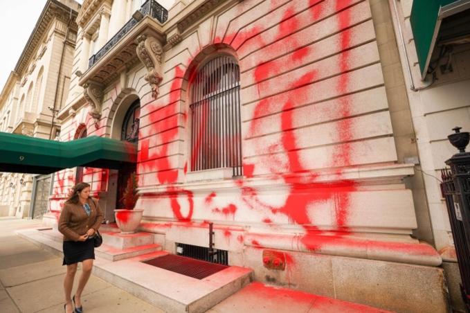 Một người qua đường rạng sáng 30/9 gọi tới đường dây nóng 911 để thông báo mặt tiền Tổng lãnh sự quán Liên bang Nga gần Đại lộ Madison bị hoen bẩn do hành động phá hoại. Hình ảnh được chia sẻ sau đó cho thấy mặt trước tòa nhà, cũng như cửa trước và mái hiên, bị tạt sơn đỏ.