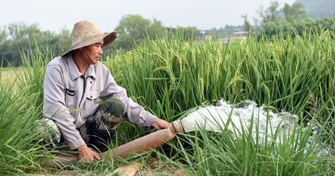 Nông dân bơm nước tưới lúa ở tỉnh An Huy, phía đông Trung Quốc hồi tháng 8. Ảnh: Xinhua
