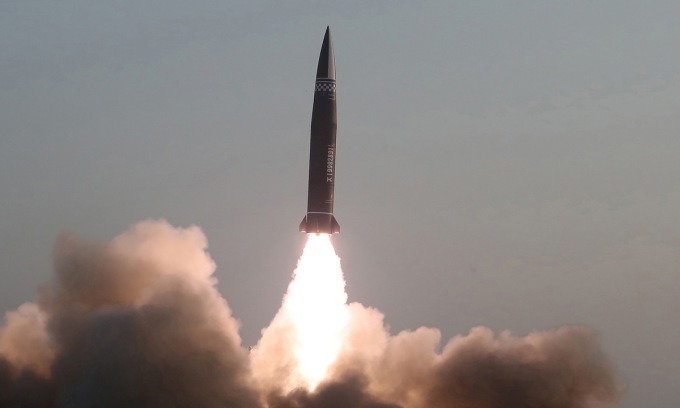 Tên lửa đạn đạo Triều Tiên phóng thử hồi tháng 3/2021. Ảnh: KCNA.