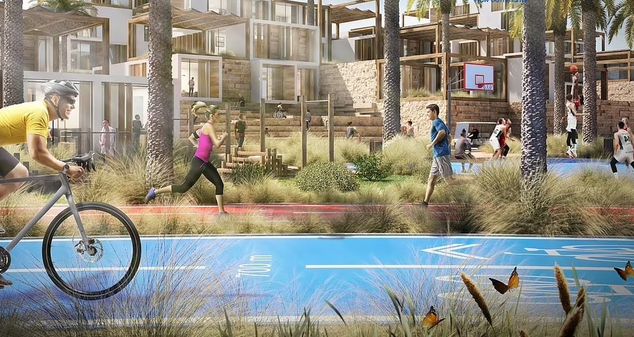 Bên trong thành phố cung cấp 35 km đường chạy bộ và đạp xe chuyên dụng, 9 km đường đua ngựa nối với trung tâm cưỡi ngựa.