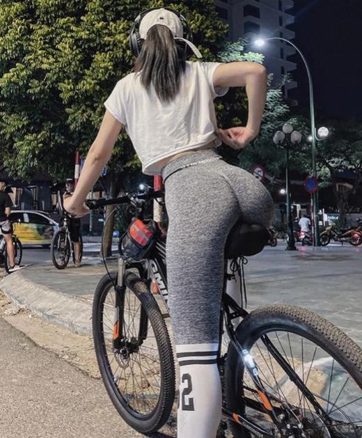 Không ít người đẹp Việt chọn mặc quần legging khi đạp xe rèn luyện sức khỏe, giữ dáng.