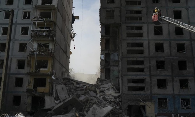Theo Thống đốc vùng Zaporizhzhia Oleksandr Starukh, máy bay Nga đă phóng ít nhất 12 tên lửa, phá hủy nhiều phần của một ṭa nhà chung cư 9 tầng, san bằng 5 ngôi nhà dân và làm hư hại nhiều ngôi nhà khác. Giới chức đă phong tỏa ṭa nhà 9 tầng bị trúng tên lửa để t́m kiếm người dưới đống đổ nát.