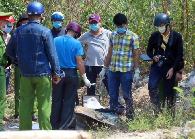 Cảnh sát khám nghiệm hiện trường thi thể bị phi tang, sáng 28/3/2020. Ảnh: An Toàn