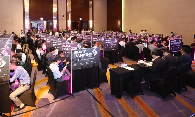 Các kỹ sư an toàn thông tin của nhiều ngân hàng tham gia diễn tập phòng thủ tại sự kiện Smart Banking 2022. Ảnh: Lưu Quý