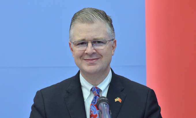 "Các khoản hỗ trợ an ninh cho Việt Nam trong 10 năm qua đã đạt mốc 450 triệu", ông nói. "Quan hệ thương mại Việt - Mỹ trong năm 2021 đã đạt mốc 113 tỷ USD".