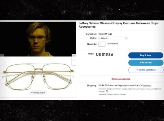 Tóc giả, mắt kính và quần áo giống Jeffrey Dahmer hiện được bán trên các sàn thương mại điện tử. Lý do là hầu hết cửa hàng bán lẻ lớn từ chối cung cấp sản phẩm này.