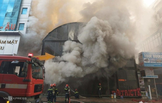 Đến 11h, khói đen vẫn nghi ngút từ quán bar sau một giờ rưỡi cháy. Trả lời VnExpress, đại diện Cảnh sát PCCC TP HCM cho biết nguyên nhân ban đầu xác định khi sửa chữa quán, thợ hàn cắt kim loại để tia lửa bắn vào vật liệu cách âm khiến hỏa hoạn bùng phát. Diện tích cháy khoảng 300 m2, không gây thương vong, nhiều tài sản bị thiêu rụi.