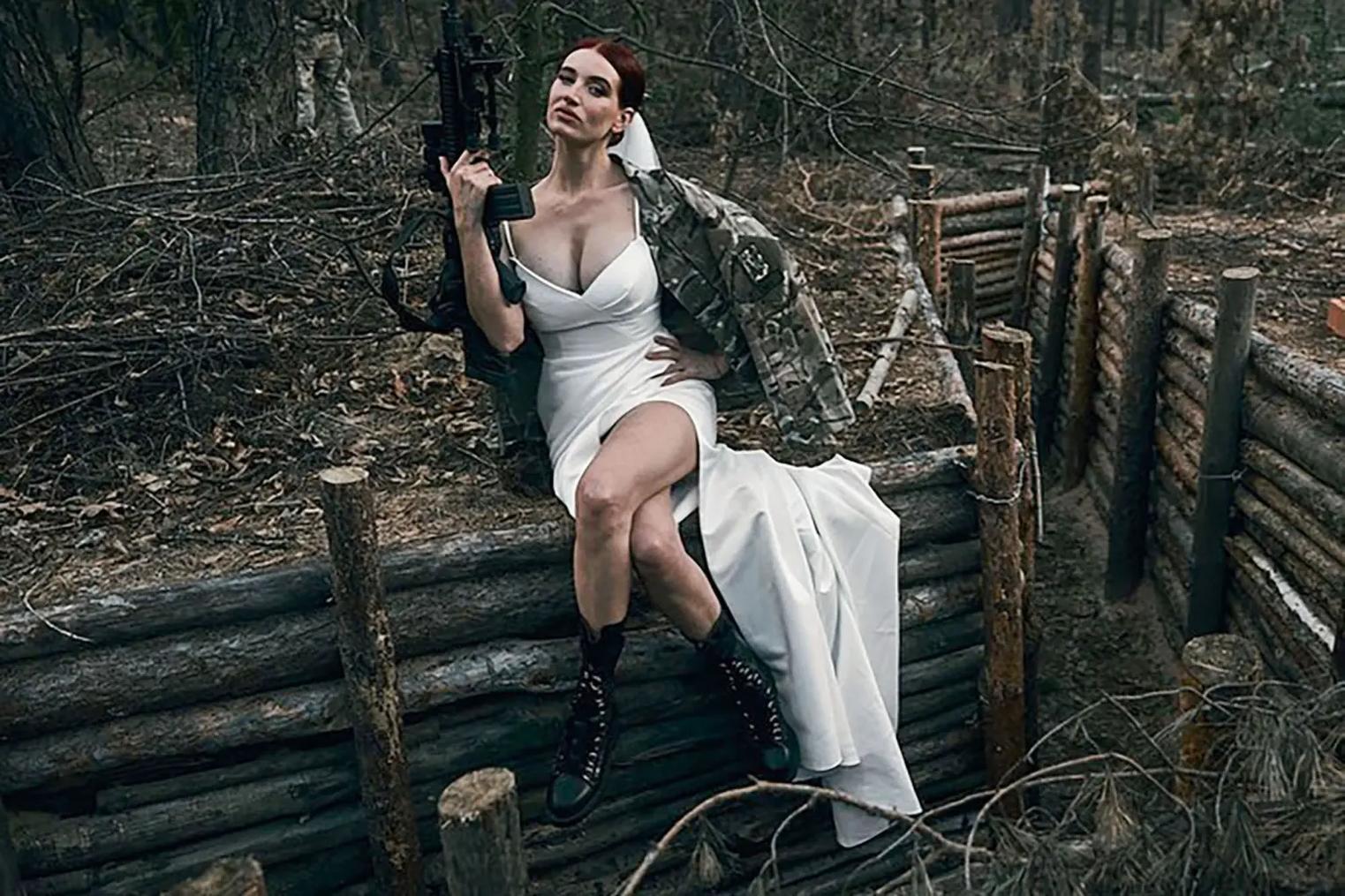 Nữ xạ thủ Ukraine thướt tha trong chiếc váy cưới màu trắng. Ảnh NY Post