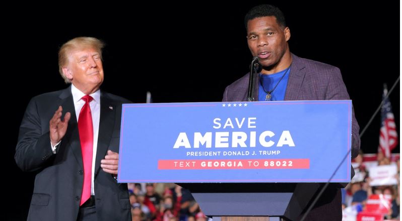 Ứng cử viên thượng nghị sĩ hiện tại Herschel Walker phát biểu tại một cuộc vận động có sự tham gia của cựu Tổng thống Trump ở Georgia. Ảnh: Reuters.