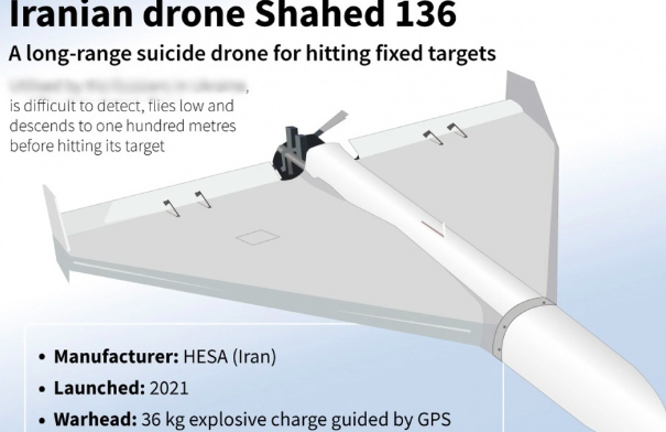 Giới chức Mỹ và Ukraine nhận định các UAV mà Nga vừa triển khai thời gian gần đây được sản xuất ở Iran với tên gọi Shahed-136. Chúng được thiết kế để tấn công các mục tiêu cụ thể bằng thuốc nổ được mang qua cự ly xa tới 2.414km.