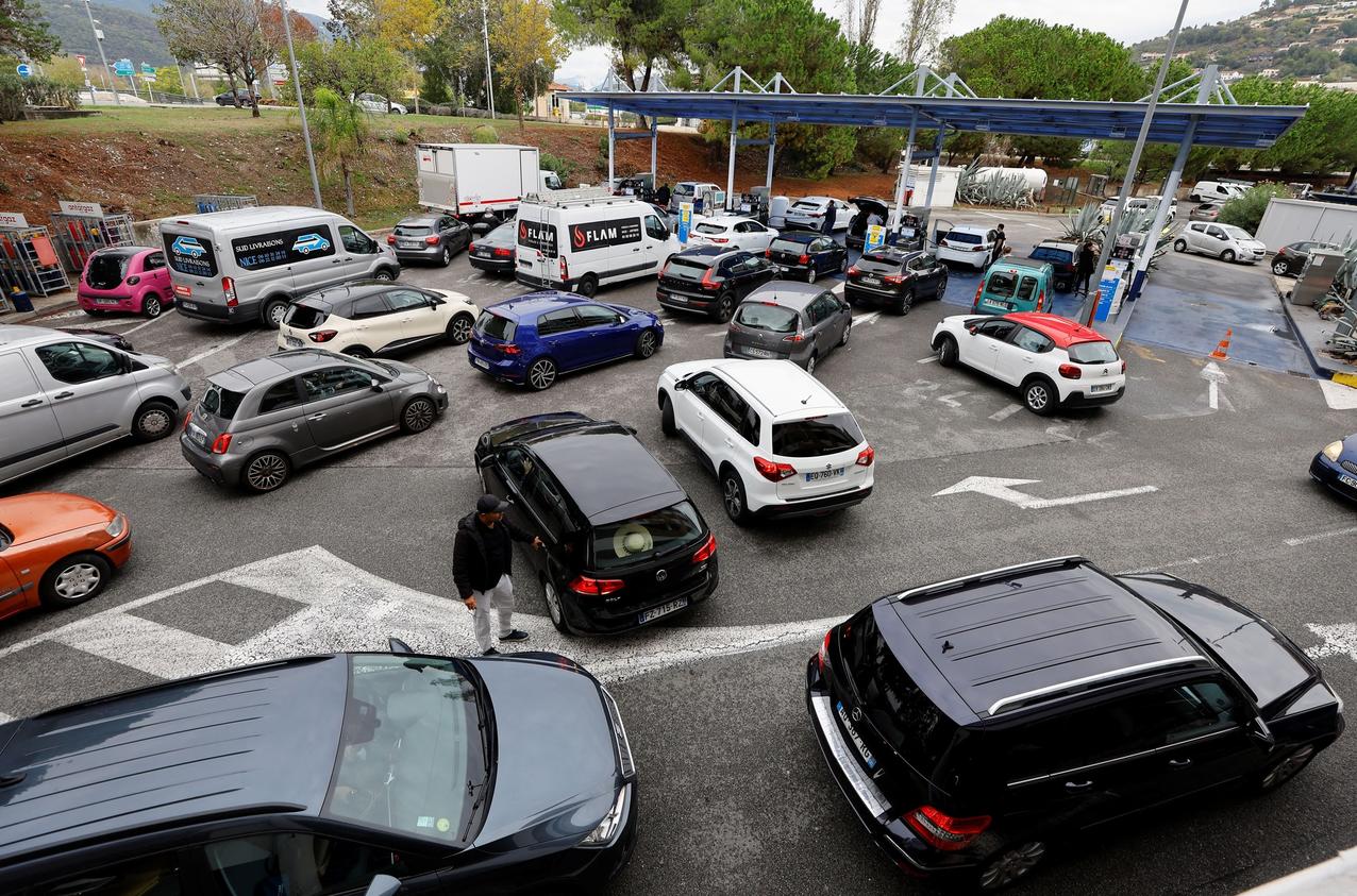 Ôtô xếp hàng chờ đổ nhiên liệu tại một trạm xăng ở Nice, Pháp, vào ngày 10/10. Ảnh: Reuters.