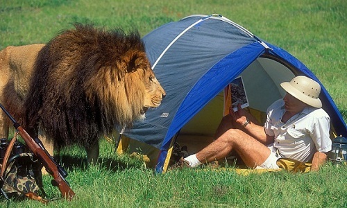 Tom và John đang cắm trại trong rừng thì gặp phải một con sư tử.