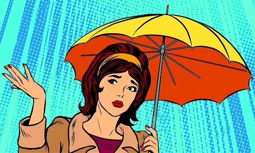 Trời mưa, thấy một cô gái xinh đẹp đứng co ro dưới mái hiên quán tạp hoá nhỏ, Tèo vội vào quán mua một cái ô cầm ra.