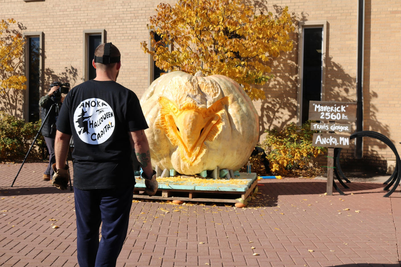 Để chuẩn bị cho lễ Halloween sắp tới, người dân địa phương Anoka đã lựa chọn quả bí ngô Maverick để chạm khắc biến thành chiếc đèn lồng khổng lồ.